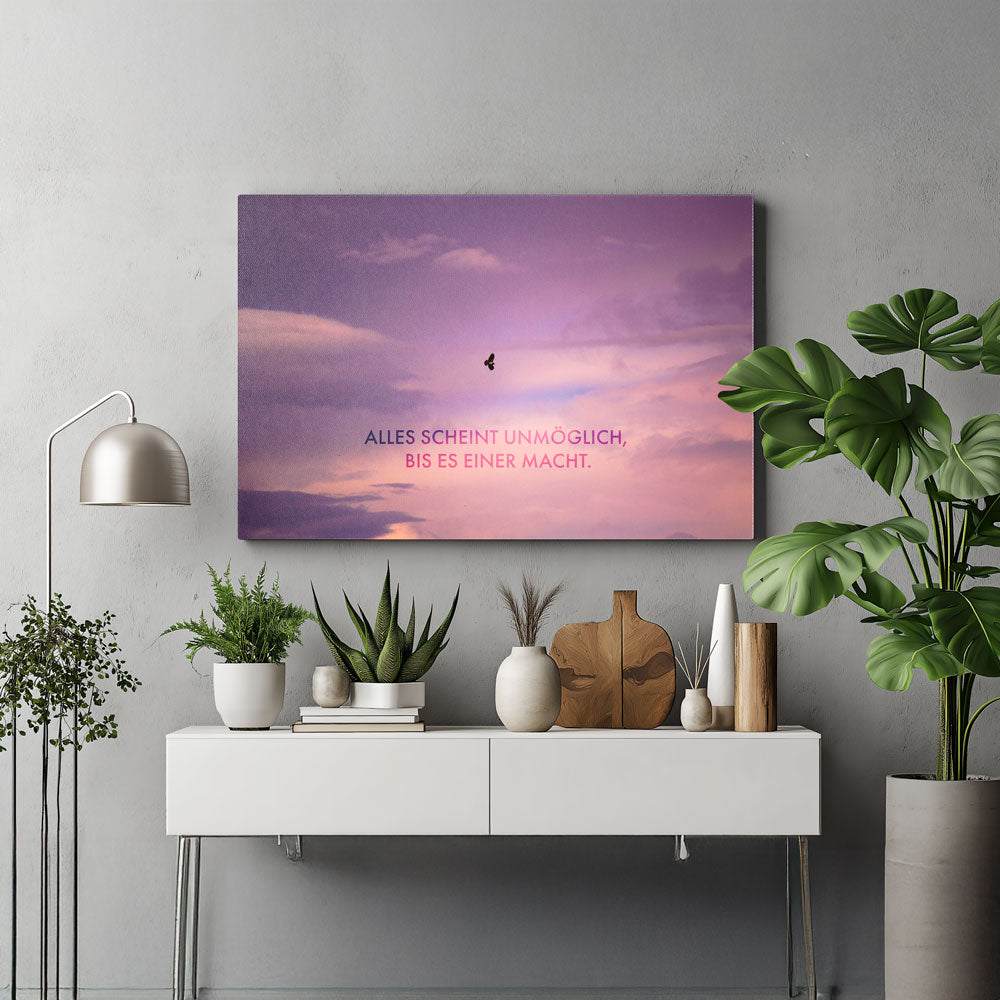 Leinwandbilder mit Sprüchen bringen Wort und Farbe in Einklang – für Räume, die nicht nur eingerichtet, sondern auch emotional aufgeladen sein sollen. In unseren farbigen Wandbildern mit Sprüchen trifft klare Botschaft auf atmosphärische Bildsprache – lebendig, inspirierend und kraftvoll.
